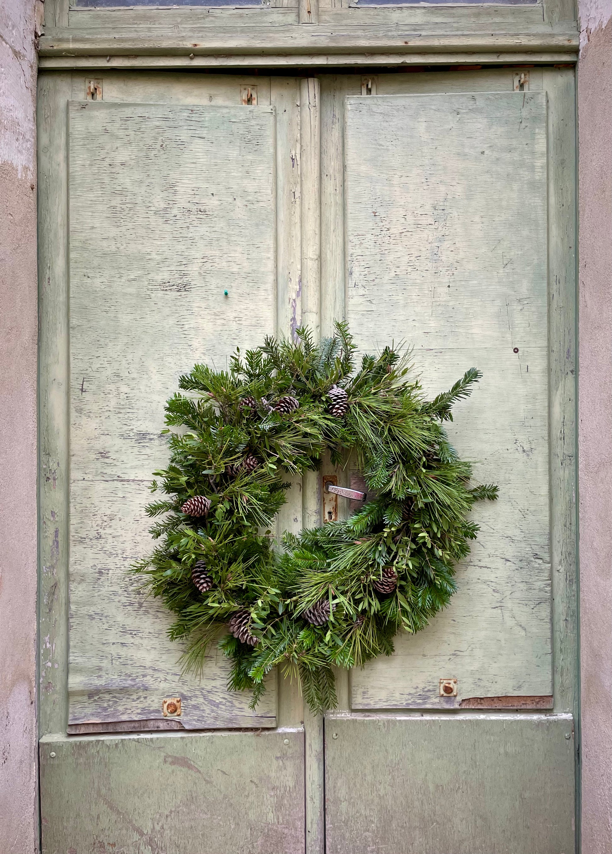 Chaque couronne est une pièce unique, les végétaux ou rubans utilisés peuvent légèrement différer d'un modèle à l'autre.